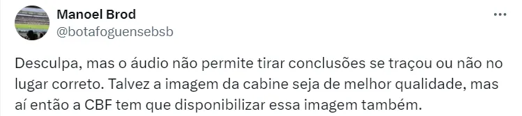 “Essa projeção no solo vai cortar alguma parte, vão dizer que cortaram braço, cotovelo”, finalizou PC Oliveira. Apesar da análise, muitos torcedores criticaram a fala do ex-árbitro nas redes sociais botafoguenses.