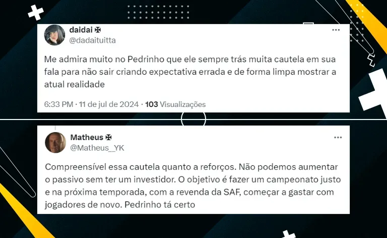 Porém, o time carioca não deve parar por aí. Além de Coutinho, também chegaram Alex Teixeira e Souza, Pedrinho falou sobre a dupla na entrevista. Além disso, o mandatário também afirmou que mira mais reforços.