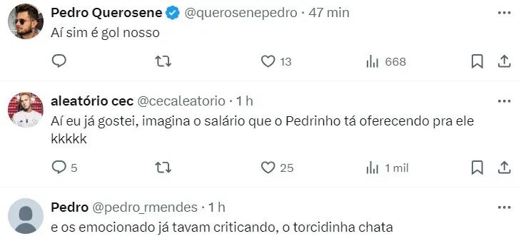 Além disso, Pedro Lourenço fez questão de esclarecer alguns pontos. O empresário deixou claro que Seabra e Gabriel Lime seguem em suas funções no Cruzeiro. Em seguida, confirmou a chegada de Alexandre Mattos para assumir a posição deixada por Pedro Martins e seria exercida de forma interina por Paulo André.