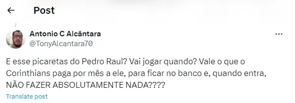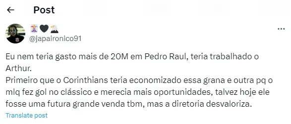 Todavia, mesmo com a cabeça voltada para a Sula, nesta segunda-feira (27), outro assunto está agitando as alamedas do Parque São Jorge: a situação complicada de um jogador que chegou recentemente ao clube, Pedro Raul.