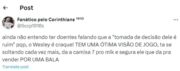Todavia, mesmo ainda comemorando o belo resultado, nas últimas horas, outro assunto está bombando nas alamedas do Parque São Jorge: uma declaração do técnico António Oliveira envolvendo a situação do atacante Wesley, destaque da equipe em 2024.