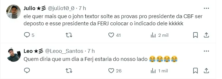 O presidente da Federação de Futebol do Estado do Rio de Janeiro (Ferj), Rubens Lopes, expressou apoio ao empresário John Textor em sua luta contra a corrupção no futebol brasileiro.