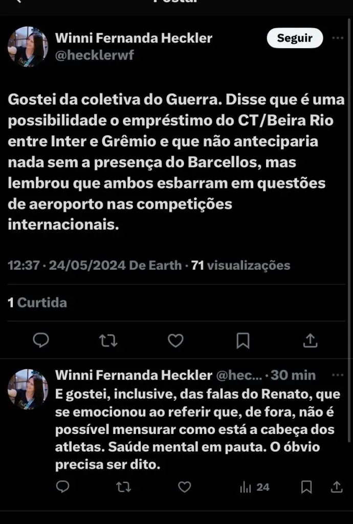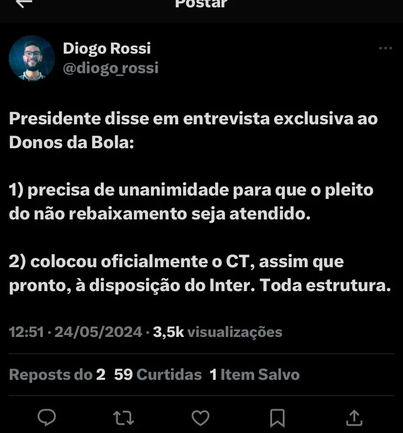 Além disso, Guerra também falou sobre a possibilidade de não haver rebaixamento em 2024, diante das circunstâncias. Até então, segundo informações do GE, a premissa não partiu da dupla Gre-Nal: