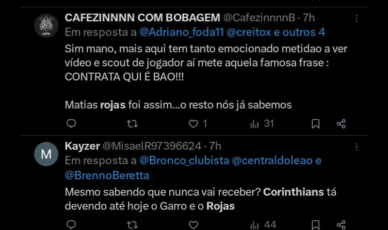Inclusive, em entrevista recente ao Canal do Benja, o presidente do clube, Augusto Melo, admitiu que houve um erro na condução do caso:“Estávamos em Maringá e, de repente, estoura a cobrança do Rojas. Ele (Rubão) diz: “Falei com o empresário do jogador e pode pagar dia 5”. Então fiquei tranquilo. Quando a gente volta para São Paulo, vem o advogado e fala: “O Rojas foi embora”. Como não pagou? Aí eu ligo para o empresário do Rojas, que me disse que estava há mais de dez dias tentando falar com o Rubão, e ele não deu satisfação”, disse.