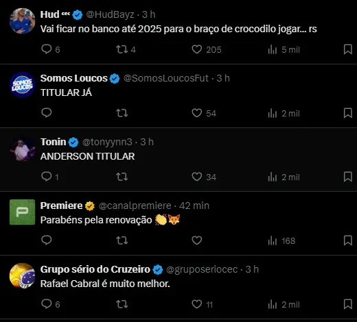 Anderson, que tem 26 anos, juntou-se ao Cruzeiro no ano passado. Apesar da presença constante de Rafael Cabral como goleiro titular, o Cruzeiro vê em Anderson um ativo valioso para a equipe, tanto em termos esportivos quanto de liderança.