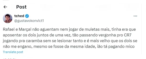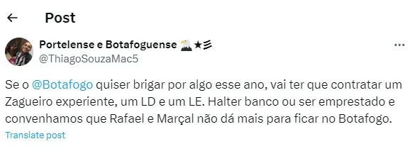 Agora, depois de descobrirem sobre essa fala do camisa 2, a torcida botafoguense deu as seguintes declarações na web (SIC). “Esse cara já tinha que ter parado, não agrega nada ao nosso time”. “A carreira dele já era, tem que antecipar esse fim”.