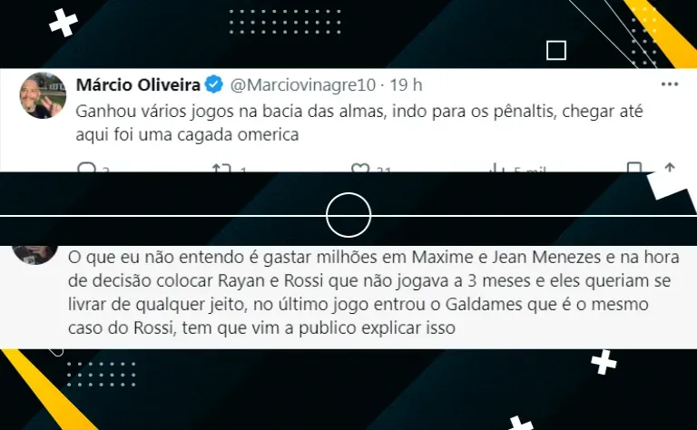 Em entrevista coletiva após a partida, o técnico Rafael Paiva comentou sobre as escolhas na utilização dos atacantes Rossi e Rayan durante o jogo, destacando a estratégia adotada para tentar superar o adversário mineiro.