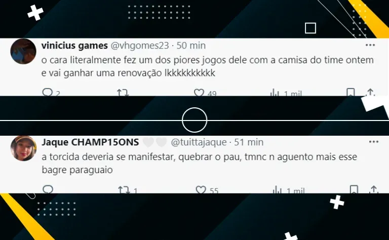 O Corinthians empatou por 0 a 0 com o Racing, da Argentina, na partida de ida das semifinais da Sul-Americana. O resultado deixou a torcida insatisfeita, especialmente com a atuação de alguns jogadores.