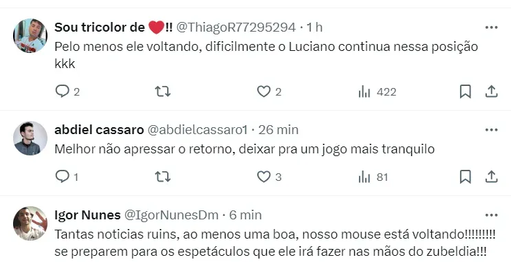 Segundo a fonte, o departamento médico do Clube e a Fisioterapia não estão mais permitindo os retornos dos jogadores lesionados com aceleração, somente com 100% certeza de que o atleta está recuperado.