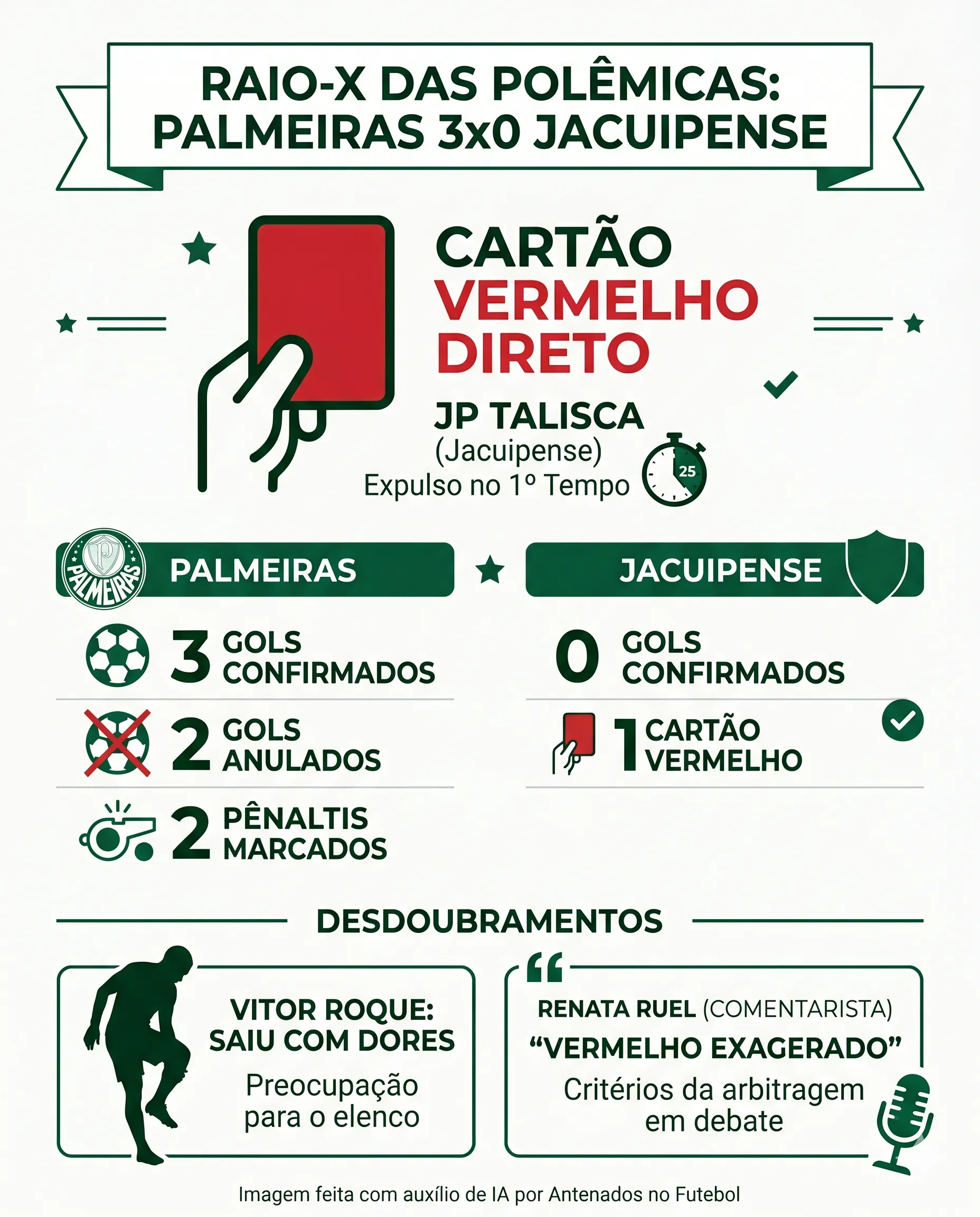 A análise de Renata Ruel reforça um ponto sensível no futebol brasileiro: a falta de uniformidade nos critérios de arbitragem. O Palmeiras venceu com autoridade, mas o protagonismo das decisões do árbitro evidencia como interpretações subjetivas podem influenciar o jogo. Em confrontos mais equilibrados, um lance como esse poderia mudar completamente o resultado.