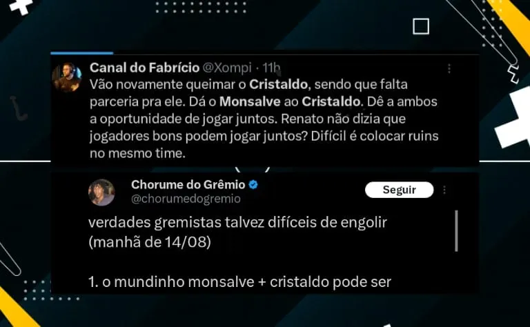 Após a partida, Renato Portaluppi voltou a falar sobre a possibilidade de Monsalve e Cristaldo atuarem juntos no Tricolor. Cristaldo estava entre os titulares, e Monsalve entrou em seu lugar durante o segundo tempo.