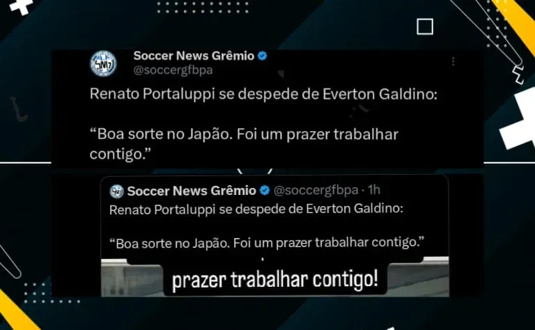 Em uma de suas redes sociais oficiais, o ídolo gremista desejou boa sorte ao jogador em sua nova jornada: (SIC) “Boa sorte no Japão, Galdino. Foi um prazer trabalhar contigo”, disse.