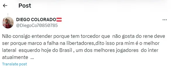 Todavia, mesmo ainda festejando o importante resultado, nesta sexta-feira (26), outro assunto ganhou os holofotes em Porto Alegre: a grande partida do lateral-esquerdo Renê, contra os equatorianos. Sendo assim , os seguintes comentários foram realizados pela torcida.
