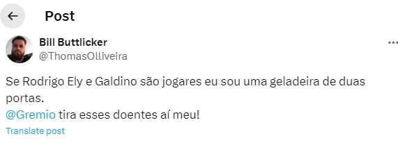 Falando um pouco sobre a partida de ontem, nas últimas horas, a torcida gremista tomou uma ‘ação’ contra um zagueiro da equipe: trata-se de Rodrigo Ely. Sendo assim, os seguintes comentários estão bombando nas redes sociais (SIC).