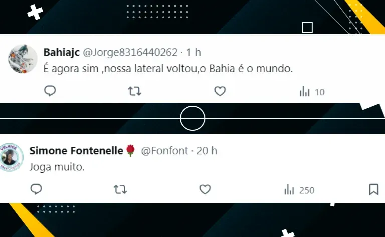 Agora, ele retorna ao Bahia e tem grandes chances de já começar entre os 11. Pela esquerda ainda não se sabe se Luciano Juba volta à titularidade ou irá continuar com Iago Borduchi, que estreou contra o Cuiabá.