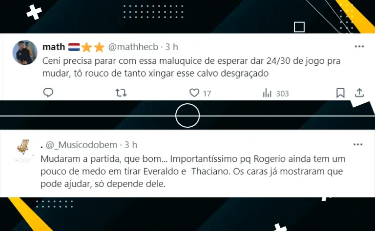 Ainda assim, a torcida criticou a demora do técnico Rogério Ceni em fazer substituições, principalmente a de Luciano Rodríguez. O comandante explicou que o planejamento para as mudanças foi analisado pelas condições físicas dos atletas.