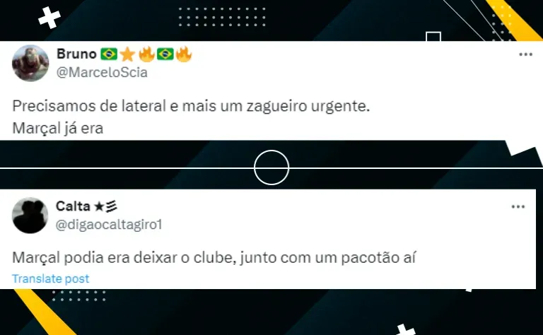 Ainda citando o embate diante do Esquadrão de Aço, nas últimas horas, a atuação de um medalhão do escrete de Artur Jorge foi ‘rasgada’ pela torcida carioca. Sendo assim, os seguintes comentários contra Marçal vieram à tona (SIC).