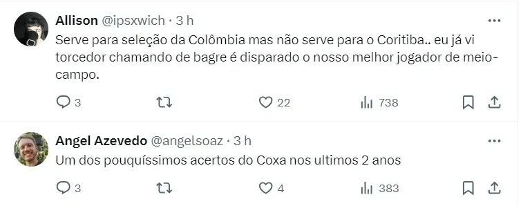 O clube, no entanto, ainda não divulgou a data de viagem do meia para se apresentar à seleção, pois a concentração da equipe colombiana começa na próxima segunda-feira, em Barranquilla, coincidentemente no mesmo dia em que o Coritiba enfrenta o Operário-PR no Couto Pereira pela sétima rodada da Série B.