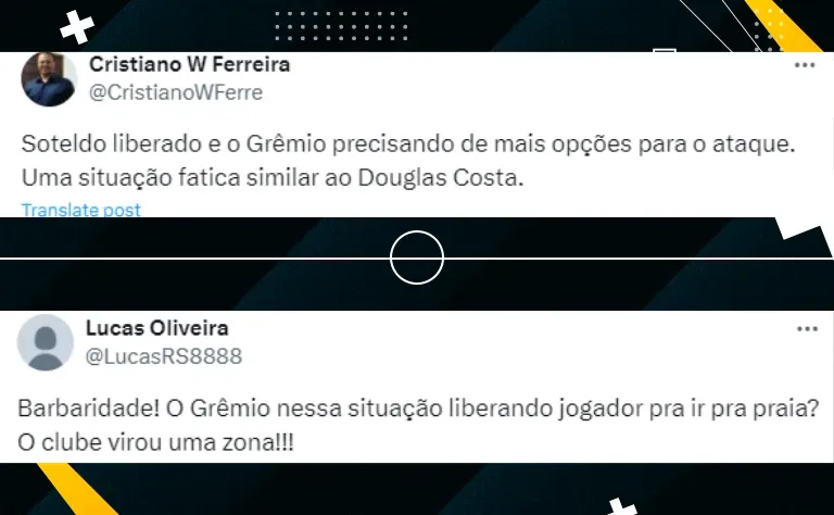 Sendo assim, os seguintes comentários contra o jogador estão ‘bombando’ nas redes sociais (SIC). “Esse aí não está jogando nada, espero que suma da equipe”. “Esse cara sendo liberado e a equipe precisando de peças para o setor ofensivo, só pode ser brincadeira”.