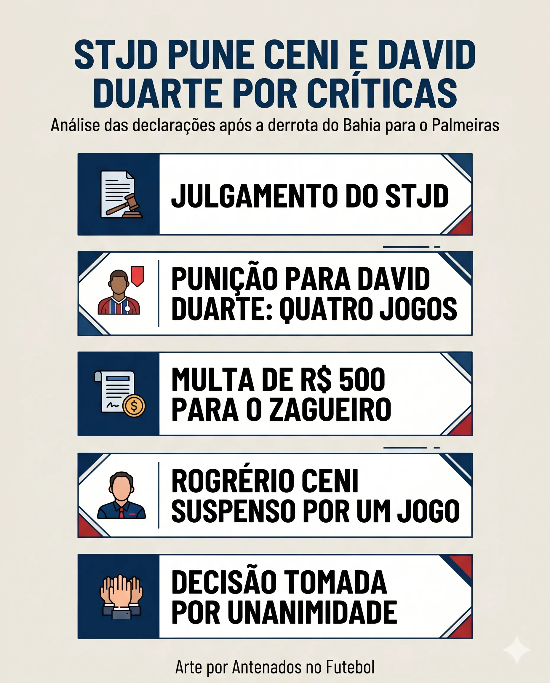 A decisão do STJD ocorre após críticas diretas à arbitragem, que de fato foram intensas por parte do Bahia. Ainda assim, o contexto da partida, com lances contestados, ajuda a explicar a reação do clube. Mesmo assim, as punições aplicadas foram severas, e o recurso aparece como caminho natural para tentar reverter ou ao menos amenizar as penalidades.