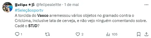 Lembrando que toda a confusão em questão começou após o gol de Lucas Piton, que empatou a partida no fim do segundo tempo. Após, o Vasco conseguiu a classificação na decisão por pênaltis ao ganhar por 4 a 1.