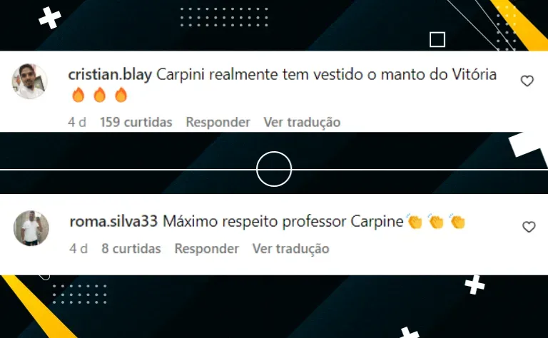 “Não tenho por que não falar que me vejo no Vitória. Sou muito bem abraçado. O que falta para uma felicidade completa, se acontecer uma renovação, vou ficar muito feliz. Me vejo no Vitória. Se tudo acontecer pela permanência e a gente continuar, não tenho dúvida que pode ser um ano melhor, trazer os meus filhos, a minha esposa e, sem dúvida, a gente vai estar muito mais completo”, concluiu Carpini.