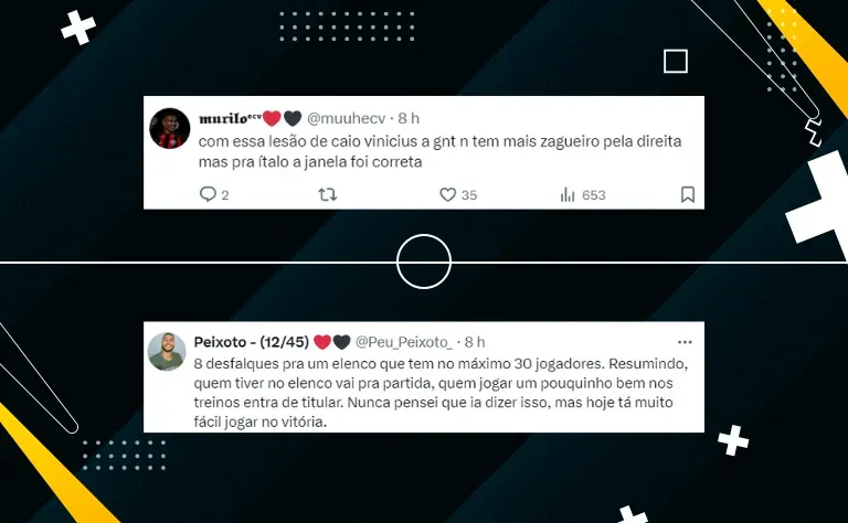 Além do revés, o clube baiano sofreu com duas baixas significativas: Caio Vinícius, que vinha sendo improvisado como zagueiro, saiu de campo lesionado com um problema na parte posterior da coxa esquerda. Com isso, o número de jogadores no departamento médico do Vitória subiu para sete.