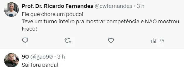 “Não sei, enfim, mas ficou o sentimento. Isso é subjetivo, porque se você pegar o meu percentual de pontos daria para escapar”, continuou. “Eu acho que merecia ter o voto de confiança, pelo menos ter continuado e pegado o clube num cenário um pouco diferente”, analisou.
