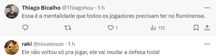 “Lembro dos jogos, dos treinamentos, da qualidade técnica, tinha a bola muito próxima do pé, (Diniz) era um cara que agregava muito para a nossa equipe. Na última vez que fui para o Fluminense, a gente se conectou. Sempre teve a conversa sobre voltar, trabalhar junto”, iniciou.