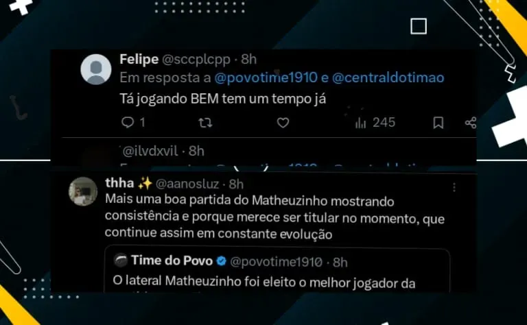 “É nítido, dá para ver no campo o que estou entregando, mas a gente fica triste, infelizmente nossa profissão é assim. Mexe com a paixão, tem torcedor que deixa de trabalhar para viver de Corinthians, a gente entende. Fico triste quando não dou meu melhor futebol, mas estou com a cabeça tranquila, estou feliz. Sinto que estou evoluindo, ajudando mais a cada jogo”, finalizou.