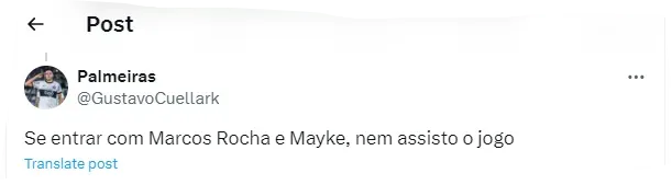 Ainda falando sobre a grande final, nas últimas horas, a torcida palmeirense cansou de esperar uma ‘postura’ de Abel e pediu quem um veterano fique no banco de reservas nesse embate crucial. Sendo assim, os seguintes comentários vieram à tona (SIC).