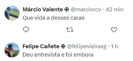 Em seguida, foram dirigidas as seguintes palavras para o jogador: “Você tem cochilado dentro de campo, você tem sido frouxo.” O atleta confirmou que o resultado foi vergonhoso e disse que o time irá trabalhar para melhorar.