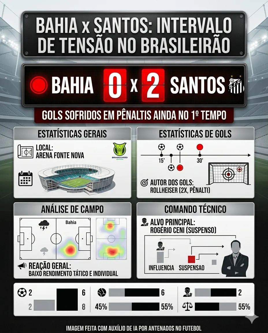 A noite de sábado foi de forte tensão para o Bahia diante de sua torcida. No duelo contra o Santos, válido pela 13ª rodada do Campeonato Brasileiro, o intervalo foi marcado por manifestações intensas nas arquibancadas da Arena Fonte Nova. A partida terminou com o placar em 2 a 2.