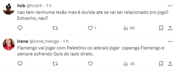 De acordo com o Flamengo, o uruguaio treinou na última segunda (6), na véspera do confronto com o Palestino, pela Libertadores. Porém,o jornal O Globo afirma que o jogador vai a campo.