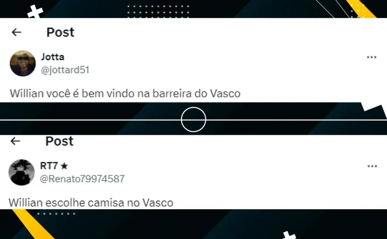Isso porque, após Willian anunciar sua saída do Fulham, da Inglaterra, o nome do atacante foi ‘aprovado’ por alguns torcedores. Sendo assim, os seguintes comentários envolvendo a possível contratação do medalhão estão bombando na web vascaína (SIC).