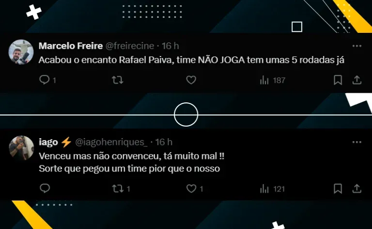 “Desde o jogo contra o Grêmio, naquele campo horrível, com muita chuva, campo muito pesado, dificultou muito a nossa sequência de descanso. Creio que não foi nada de parte técnica, é mais o cansaço que está no nosso corpo”, explicou o jogador.