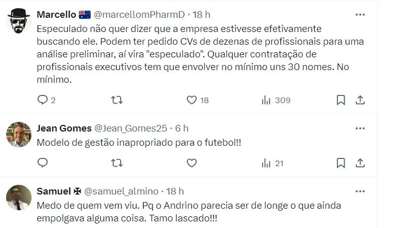 Enquanto a diretoria se empenha na seleção do novo diretor, o Vasco mantém uma postura de cautela. Internamente, acredita-se na capacidade da comissão temporária, liderada pelo CEO Lúcio Barbosa, para gerenciar as atividades do futebol diário até que o substituto de Mattos seja oficialmente anunciado.