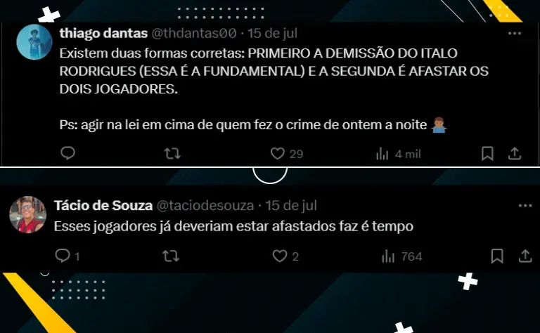 Rodrigo Andrade não vinha tendo muitas oportunidades com o técnico Thiago Carpini. Por isso, o Vitória não já não ia renovar com o volante de 27 anos e ele deve ser emprestado. Por outro lado, Dudu era um dos destaques da equipe e, recentemente, teve seu nome ligado ao Corinthians. Dudu tem contrato com o Vitória até o fim de 2027.