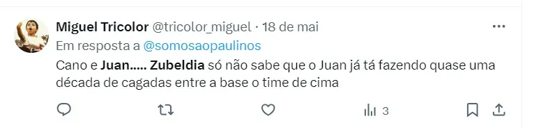 Revelado nas categorias de base do Tricolor, Juan tem sido alvo de críticas, principalmente por sua aparente dificuldade em converter chances de gol. Apesar dos tropeços, Zubeldía mantém sua confiança no jogador, destacando sua movimentação e esforço em campo.